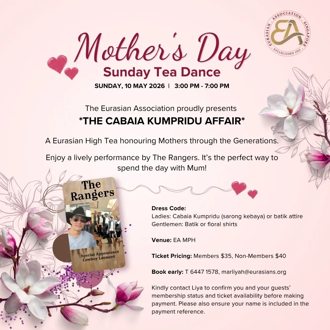 The Eurasian Association (EA) preserves and promotes awareness of Eurasian heritage in Singapore and supports the less fortunate through community initiatives. The Eurasian Community House, home to the EA and Eurasian Heritage Gallery, is our platform for community collaboration.